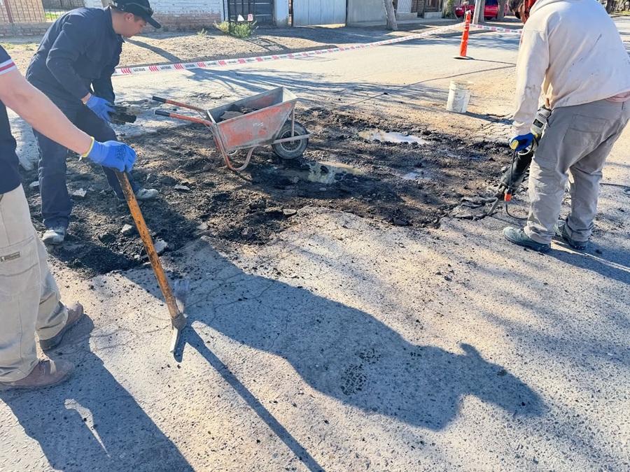 Por otro lado, se están ejecutando tareas de bacheo en la calle Santa Rosa Oeste, donde la calzada presentaba un marcado deterioro. Se está utilizando material de concreto, que requiere tiempo de fraguado para su correcto endurecimiento. Por esta razón, se solicita a la comunidad circular con precaución por la zona intervenida.