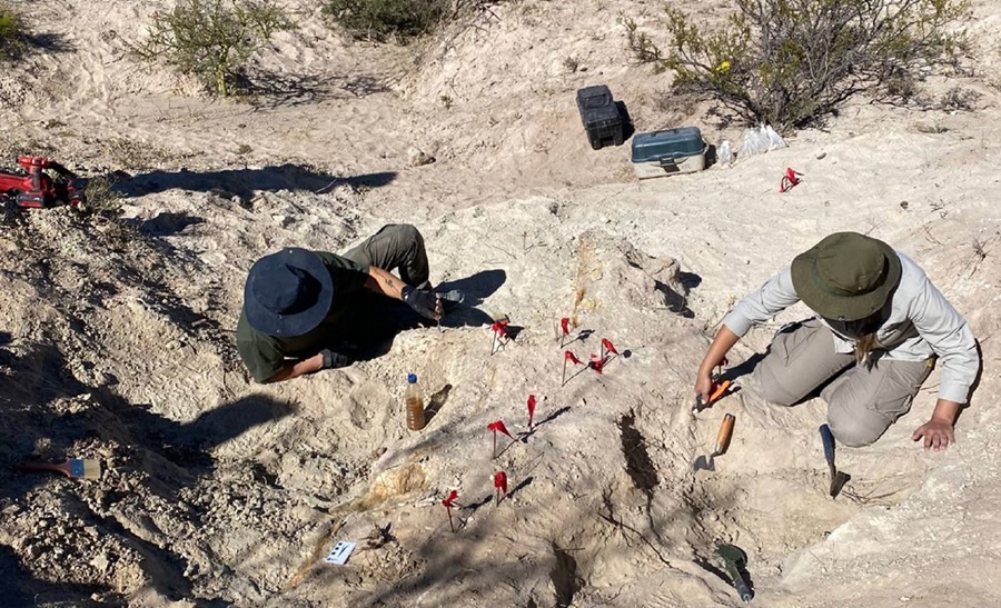 El hallazgo se produjo en el área conocida como Colonia Chica, donde especialistas del Museo Provincial de Historia Natural (MPHN) realizaban tareas de prospección. Según explicó su director, Daniel Pincén, el sitio ya había sido identificado el año pasado como de alto interés científico, a pesar de las condiciones extremas e inhóspitas del terreno.