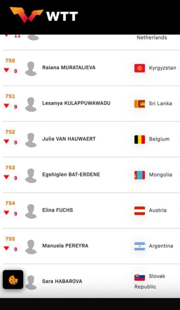 A pesar de no haber tenido actividad competitiva en lo que va de 2026, la tenista de mesa catrielense Manu Pereyra continúa posicionada entre las mejores jugadoras del mundo, ubicándose en el puesto 755 del ranking femenino de la Federación Internacional de Tenis de Mesa (ITTF).