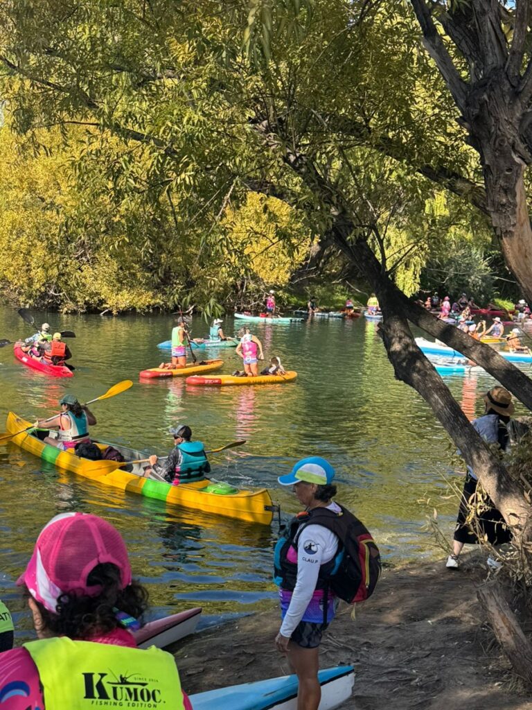 El evento, organizado por la agrupación Valkirias Rosas, reunió a más de 200 personas —en su amplia mayoría mujeres— y contó con la presencia de más de 140 embarcaciones, entre canoas, kayaks, piraguas, tablas y semirrígidos. La iniciativa tuvo como eje la concientización y el acompañamiento en la lucha contra el cáncer, en una jornada atravesada por el compromiso, la emoción y el espíritu solidario.