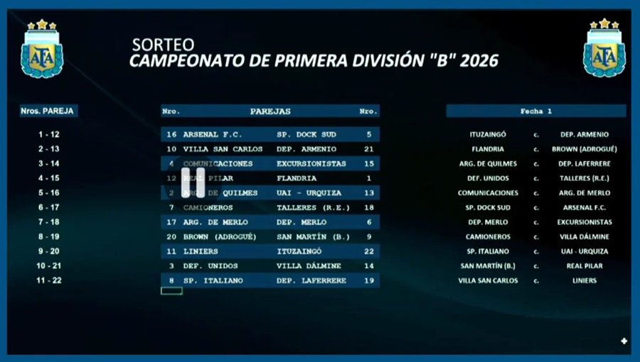 La AFA realizó los emparejamientos de los equipos de la máxima categoría de ascenso del fútbol argentino. Todos los detalles.