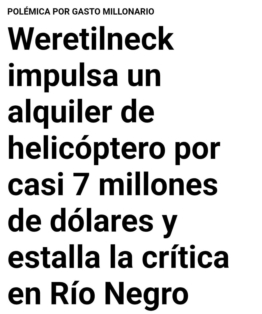 El legislador provincial Luciano Delgado Sempé advirtió sobre un nuevo y grave acto de ineficiencia en el manejo de los recursos públicos por parte del Gobierno de Río Negro, en relación con la decisión de alquilar un helicóptero hidrante por 7 millones de dólares para combatir incendios, monto con el que podrían adquirirse definitivamente tres helicópteros hidrantes usados, garantizando capacidad operativa permanente para la provincia.