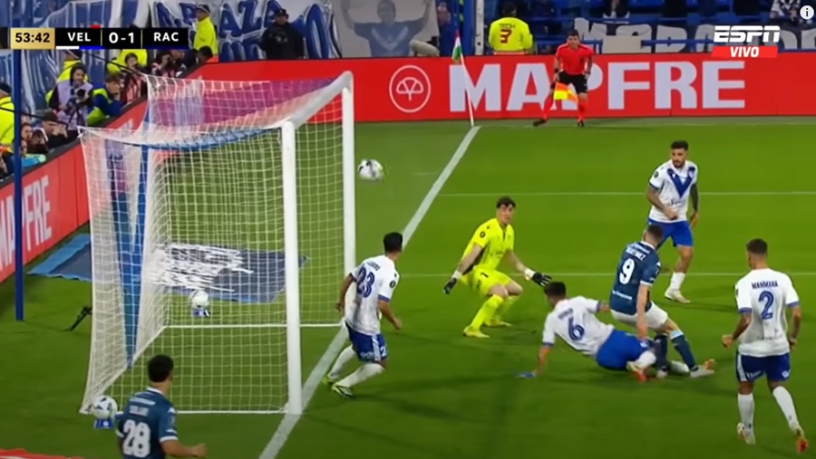 (Doble Amarillo).- Racing le ganó a Vélez por 1 a 0 al término del partido que disputaron esta noche, en el estadio José Amalfitani, por la ida de los cuartos de final de la Copa Libertadores 2025.