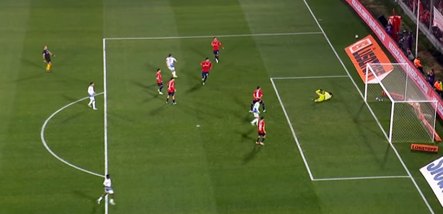 El “Rojo” tuvo su primera llegada de riesgo a los 42 minutos del primer tiempo. Un centro desde la izquierda del delantero Santiago Montiel habilitó al mediocampista Felipe Loyola, que avanzó por el costado derecho y estrelló su frentazo en el travesaño.