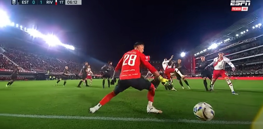 A los seis minutos, River dio el primer golpe cuando Ignacio Fernández levantó una pelota complicada por la banda derecha y Giuliano Galoppo entró con mucha potencia al área y metió la cabeza para estampar el 1 a 0 ante la floja respuesta defensiva de Estudiantes.