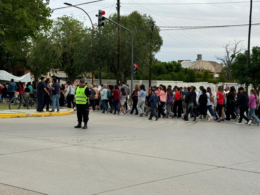 La familia Cocuzza, devastada, no estuvo sola. Detrás de Pastor, una columna de vecinos que ocupó más de una cuadra avanzó por San Martín, cruzó frente al Banco Nación y siguió hacia Entre Ríos. Personal de Tránsito acompañó el recorrido mientras la marcha se extendía, firme y ordenada.