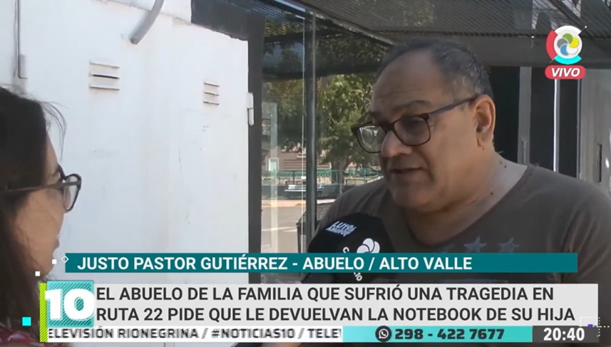 En medio del dolor, Gutiérrez también pidió ayuda para recuperar una computadora que contiene fotos y recuerdos de sus familiares fallecidos. Explicó que, tras el impacto, un maletero negro se desprendió del vehículo. Dentro iba una valija rosada con lunares que contenía una netbook fundamental para él.