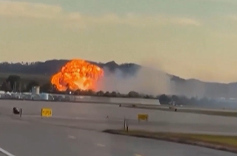 En un video se puede ver cómo el avión, que acaba de despegar, vuela a baja altura mientras arde, poco antes de estrellarse y explotar, desatando una gran columna de fuego.