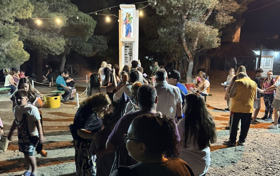 Para los peregrinos catrielenses, el recorrido superó los 20 kilómetros. Partieron a las 18 horas desde la parroquia local, llevando sobre los hombros la imagen de la Virgen y entonando cánticos cristianos que acompañaron cada tramo del camino. Con paso firme y espíritu comunitario, avanzaron hasta llegar al santuario cuando la noche comenzaba a cubrir el cielo y las primeras estrellas iluminaban las esperanzas y plegarias de los creyentes.