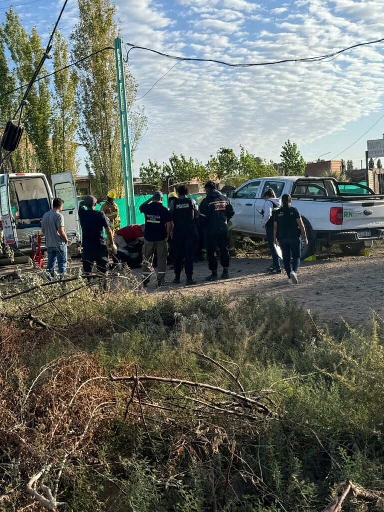 Un violento accidente de tránsito se registró este martes por la mañana, minutos después de las 7, en la intersección de las calles Cacique Catriel y San Luis, donde colisionaron una motocicleta y una camioneta perteneciente al Estado rionegrino. Como consecuencia del impacto, el conductor de la moto llevó la peor parte y quedó debajo del rodado mayor, presentando presuntamente lesiones de gravedad.